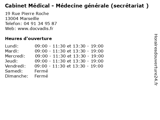 | Mercredi | 09:00-11:30 et 13:30-19:00 |
