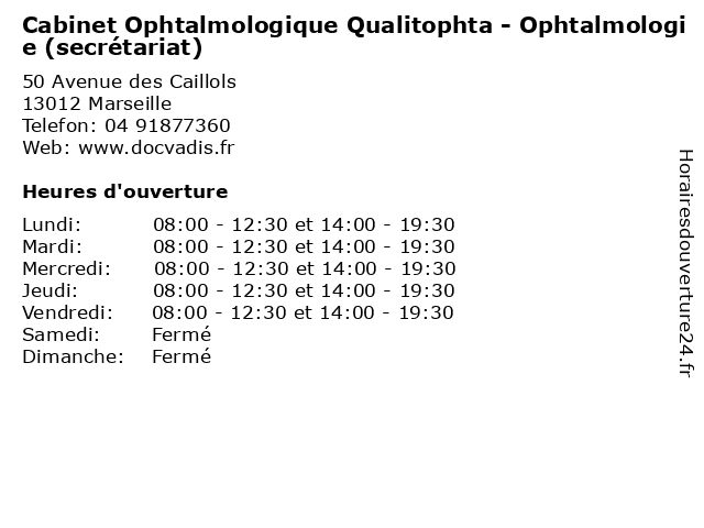 | Mercredi | 08:00-12:30 et 14:00-19:30 |