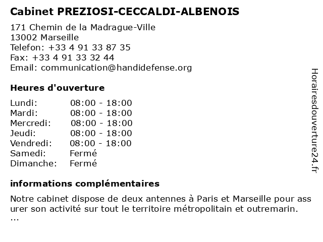 1 Preziosi Jacques Antoine (Distance: 0,01 km) 171 Chemin de la Madrague-Ville, 13002 Marseille antoine, jacques, preziosi 2 Maître Jacques-Antoine Preziosi - Avocat (Distance: 0,04 km) 171Bis chemin de la Madrague Ville, 13002 Marseille antoine, avocat, avocate, avocats, civils, droits, jacques, juridiques, maître, preziosi 3 Ceccaldi Marc-André (Distance: 0,04 km) 171 bis Chemin de la Madrague-Ville, 13002 Marseille andré, ceccaldi, marc 4 Cabinet vétérinaire Dhalmann (Distance: 4,09 km) 11 Avenue de Saint Antoine, 13464 Marseille beaute, cabinet, chaussures, deco, dhalmann, enfants, mode femmes, mode hommes, restaurant, sport, vétérinaire 5 Maître Stéphane Ceccaldi - Avocat (Distance: 4,32 km) 26 rue Montgrand, 13006 Marseille avocat, avocate, avocats, ceccaldi, civils, droits, juridiques, maître, stéphane 6 Maître Pierre Ceccaldi - Avocat (Distance: 4,47 km) 63 rue Breteuil, 13006 Marseille avocat, avocats, ceccaldi, civils, droits, juridiques, maître, pierre |