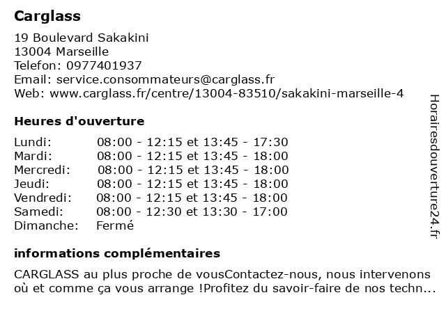 | Samedi | 08:00-12:30 et 13:30-17:00 |