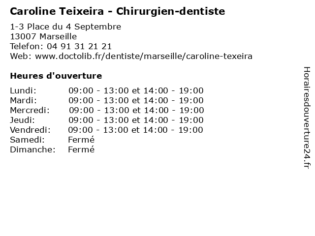 | Lundi | 09:00-13:00 et 14:00-19:00 |
