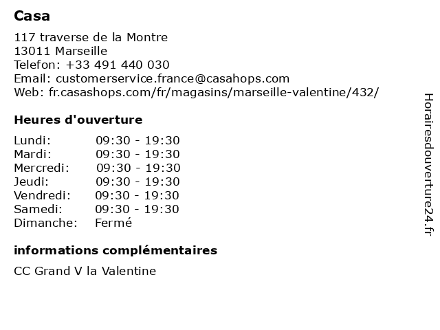 1 Casa (Distance: 0,71 km) . Tarverse de la Montre, 13011 Marseille beaute, cafe, casa, chaussures, enfants, hommes, lingerie, mode femmes, restaurant, sport 2 Casa (Distance: 12,45 km) 15 Avenue de Saint-Antoine, 13015 Marseille ameublement, cadeaux, casa, décoration, magasin, maison 3 Casa (Distance: 12,79 km) 11 Avenue de Saint Antoine, 13464 Marseille beaute, casa, chaussures, deco, enfants, mode femmes, mode hommes, restaurant, sport 4 Casa (Distance: 15,77 km) - Chemin du Puits de Brunet, 13600 La Ciotat ameublement, cadeaux, casa, décoration, magasin, maison 5 La boutique Casa de Grand (Distance: 0,26 km) 117 Traverse de la Montre,, 13011 Marseille boutique, casa, de, femme, grand, homme, la, mode 6 Casa da Beleza Salon de beauté et coiffure (Distance: 7,42 km) 9 Square Michelet, 13009 Marseille beauté, beleza, business, casa, coiffure, da, de, et, nails, salon, spa |