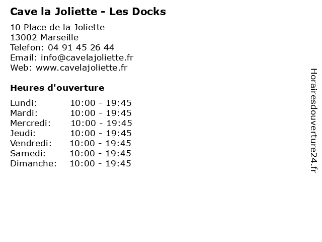 | Lundi | 10:00-19:45 |