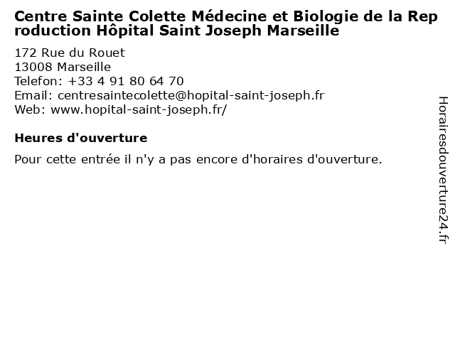 1 Fondation Hôpital Saint Joseph / Médecine Interne et Dermathologie (secrétariat ) (Distance: 0,10 km) 26 Boulevard de Louvain, 13008 Marseille consultation, dermathologie, docteur, et, fondation, hôpital, interne, joseph, médecine, médecins, saint, santé, secrétariat 2 Dr Noëlle Salvo-Morin - Spécialiste en médecine physique et de réadaptation (Distance: 0,11 km) 26 Boulevard de Louvain, 13008 Marseille de, dr, en, et, morin, médecine, médecins, médicaments, noëlle, physique, réadaptation, salvo, santé, secrétariat, spécialiste 3 Onepark / Hôpital Saint Joseph Parking (Distance: 0,14 km) 25 Boulevard Louvain, 13008 Marseille hôpital, joseph, onepark, parking, saint, services 4 Pôle Parents-Enfants Hôpital Saint Joseph Marseille (Distance: 0,14 km) 47 Traverse de l'Antignane, 13008 Marseille enfants, hôpital, joseph, marseille, parents, pôle, saint 5 Hôpital Saint Joseph Marseille (Distance: 0,15 km) 26 Boulevard de Louvain, 13008 Marseille hôpital, joseph, marseille, saint 6 Infirmière Parcours Patients Hôpital Saint Joseph Marseille (Distance: 0,15 km) 26 Boulevard de Louvain, 13008 Marseille hôpital, infirmière, joseph, marseille, parcours, patients, saint |