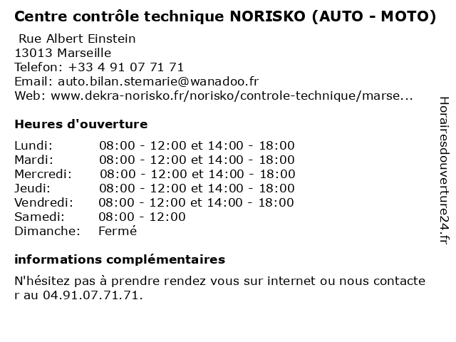 Description de l'entreprise :Préparer votre contrôle techniquePour préparer votre contrôle technique dans notre centre NORISKO de Marseille, vous pouvez vérifier en amont différents points comme les pneumatiques, la visibilité, le niveau d'huile ou encore l'habitacle. Pour tout savoir, consultez notre vidéo. Voir l'offre |