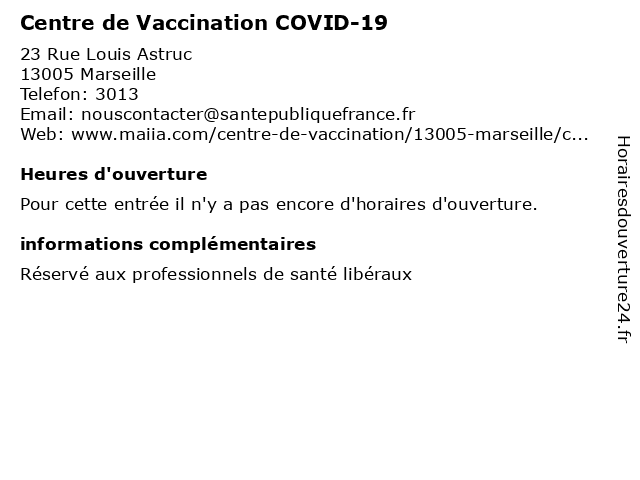1 Centre de Vaccination COVID-19 (Distance: 13,59 km) 179 Avenue des Soeurs Gastine, 13400 Aubagne 19, aux, centre, covid, covid 19, covid19, de, libéraux, médecin, médecine, médical, professionnels, réservé, santé, test, vaccin, vaccination, vaccins 2 Centre de Vaccination COVID-19 - Hôpital Conception (Distance: 0,38 km) 147 Boulevard Baille, 13005 Marseille 19, centre, conception, covid, covid 19, covid19, de, hôpital, médecin, médecine, médical, test, vaccin, vaccination, vaccins 3 Centre de Vaccination COVID-19 - Maison médicale de Garde de la Timone (Distance: 0,61 km) 264 Rue Saint Pierre, 13005 Marseille 19, centre, covid, covid 19, covid19, de, garde, la, maison, médecin, médecine, médical, médicale, test, timone, vaccin, vaccination, vaccins 4 Centre de Vaccination COVID-19 - IHU - Méditerranée Infection (Distance: 0,62 km) 19/21 Boulevard Jean Moulin, 13005 Marseille 19, centre, covid, covid 19, covid19, de, ihu, infection, médecin, médecine, médical, méditerranée, test, vaccin, vaccination, vaccins 5 Centre de Vaccination COVID-19 - Hôtel de Ville (Distance: 2,21 km) - Quai du Port, 13002 Marseille 19, centre, covid, covid 19, covid19, de, hôtel, médecin, médecine, médical, test, vaccin, vaccination, vaccins, ville 6 Centre de Vaccination COVID-19 - Centre gérontologique départemental (Distance: 2,24 km) 176 Avenue de Montolivet, 13012 Marseille 19, centre, covid, covid 19, covid19, de, départemental, gérontologique, médecin, médecine, médical, test, vaccin, vaccination, vaccins |