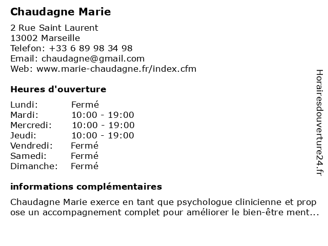 | Samedi | Fermé |