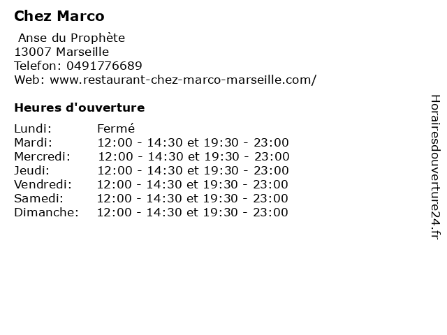 | Dimanche | 12:00-14:30 et 19:30-23:00 |