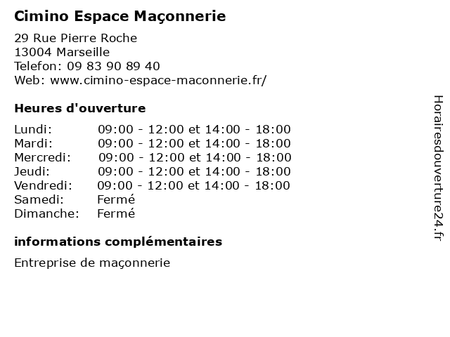 | Lundi | 09:00-12:00 et 14:00-18:00 |