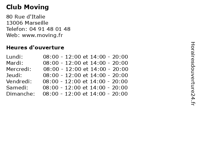| Lundi | 08:00-12:00 et 14:00-20:00 |