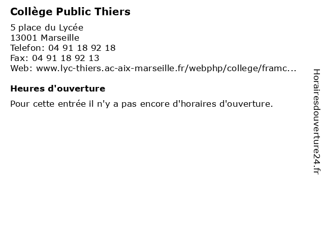 1 Lycée Public Thiers (Distance: 0,00 km) 5 place du Lycée, 13001 Marseille cio, college, cours, ecole, education, elementaire, enseignement, lycee, lycée, maternelle, nationale, orientation, primaire, privé, privée, public, publique, thiers 2 Lycée Public Victor Hugo (Distance: 0,94 km) 3 boulevard Gustave Desplaces, 13003 Marseille cio, college, cours, ecole, education, elementaire, enseignement, hugo, lycee, lycée, maternelle, nationale, orientation, primaire, privé, privée, public, publique, victor 3 Collège Public Edgar Quinet (Distance: 1,11 km) 38 rue du 141e RIA, 13003 Marseille cio, college, collège, cours, ecole, edgar, education, elementaire, enseignement, lycee, maternelle, nationale, orientation, primaire, privé, privée, public, publique, quinet 4 Collège Public Vieux port (Distance: 1,41 km) 2 rue des Martegales, 13002 Marseille cio, college, collège, cours, ecole, education, elementaire, enseignement, lycee, maternelle, nationale, orientation, port, primaire, privé, privée, public, publique, vieux 5 Maison de services au public (Distance: 1,85 km) 126-128 boulevard de Paris, 13003 Marseille administration, au, de, la, maison, marseille, mauront, organismes, public, publics, saint, services, villette 6 Maison de services au public (Distance: 3,03 km) 9 rue Cougit, 13015 Marseille administration, au, bougainville, de, maison, organismes, public, publics, services |