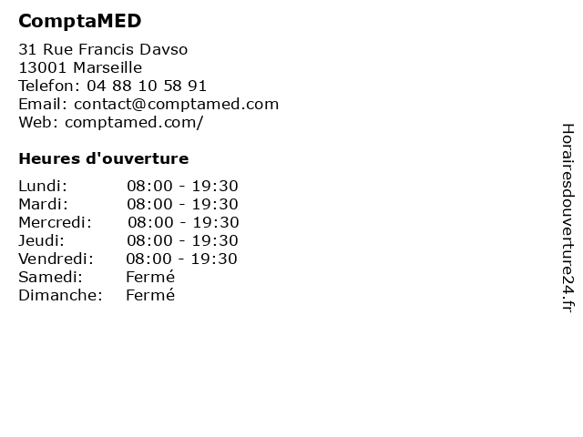 | Mercredi | 08:00-19:30 |