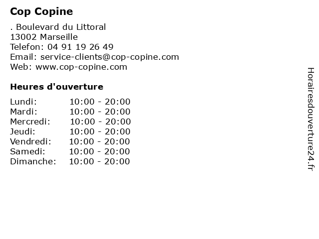 1 Cop Copine (Distance: 2,92 km) 9 Quai du Lazaret, 13002 Marseille accessoires, chaussures, cop, copine, femme, homme, mode, vetements 2 Cop Copine (Distance: 4,66 km) 24 Francis Davso, 13001 Marseille chaussures, cop, copine, femme, homme, mode, sport 3 L'Entre Deux (Distance: 22,87 km) Lotissement Les Negles, 13420 Gemenos cop, deux, entre, restaurants 4 Cop.Copine (Distance: 23,05 km) 6bis Rue Aude, 13100 Aix-en-Provence accessoires, chaussures, cop, cop.copine, copine, femme, homme, mode, vetements 5 Restaurant Les Cop's (Distance: 36,14 km) 38 Avenue Jean Monnet, 13410 Lambesc cop, restaurant, restaurants 6 Kaporal (Distance: 0,00 km) . Boulevard du Littoral, 13002 Marseille boutique, chaussures, homme, jeans, kaporal, maison, mode femme |