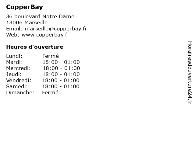 | Mercredi | 18:00-01:00 |