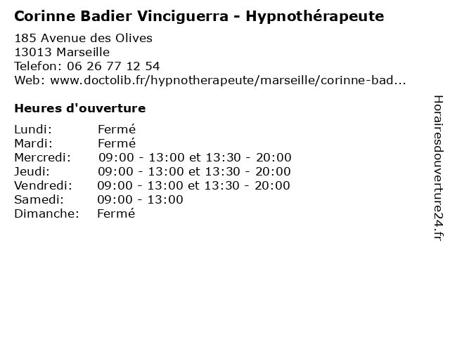 | Vendredi | 09:00-13:00 et 13:30-20:00 |