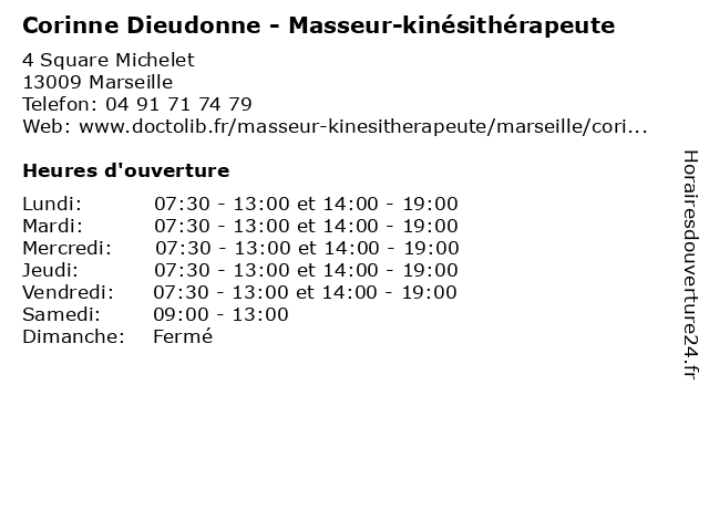 | Jeudi | 07:30-13:00 et 14:00-19:00 |