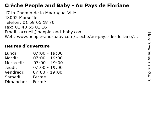 1 Crèche au Pays de Floriane (Distance: 0,03 km) 171 bis chemin de la Madrague, 13002 Marseille accueil, au, crèche, crèches, de, enfants, floriane, garde, garderie, halte-garderie, micro-crèche, mode, multi-accueil, parents, pays 2 Crèche People and Baby - Mac 1,2,3 Soleil (Distance: 1,55 km) 2 Boulevard Ledru Rollin, 13015 Marseille and, baby, crèche, crèches, garde d'enfants, les services parentalité, mac, people, projet social, projet éducatif, soleil 3 Crèche People and Baby - Valnaturéal (Distance: 2,17 km) - Rue le Chatelier, 13015 Marseille and, baby, crèche, crèches, garde d'enfants, les services parentalité, people, projet social, projet éducatif, valnaturéal 4 Navy Club Women And Kids (Distance: 3,14 km) . Avenue Prosper Mérimée, 13014 Marseille accessoires, and, beaute&sante, cafe, chaussures, club, enfants, kids, mode femmes, mode hommes, navy, optique, restaurant, service, sport, women 5 Crèche People and Baby - Chanterelle (Distance: 3,67 km) 3 Allée Simone Gébelin, 13001 Marseille and, baby, chanterelle, crèche, crèches, garde d'enfants, les services parentalité, people, projet social, projet éducatif 6 Crèche People and Baby - Amandine et Grenadine (Distance: 3,75 km) 3 Cours Joseph Thierry, 13001 Marseille amandine, and, baby, crèche, crèches, et, garde d'enfants, grenadine, les services parentalité, people, projet social, projet éducatif |