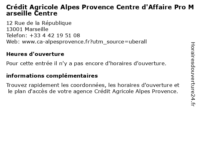 | Appeler Crédit Agricole Alpes Provence Centre d'Affaire Pro Marseille Centre | |