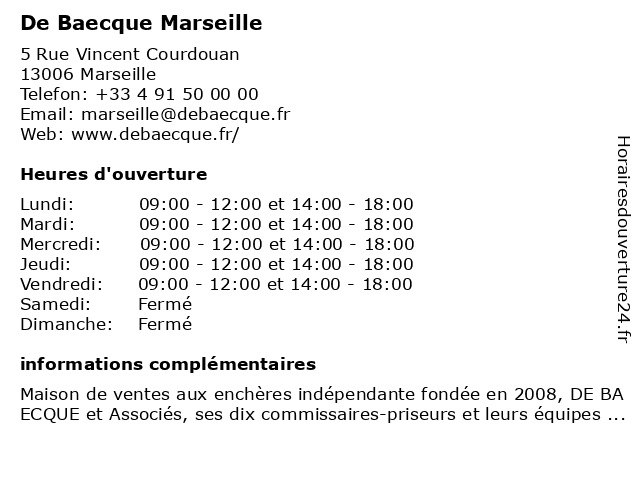 Maison de ventes aux enchères indépendante fondée en 2008, DE BAECQUE et Associés, ses dix commissaires-priseurs et leurs équipes organisent des ventes à Paris, Lyon, Marseille et Versailles.
