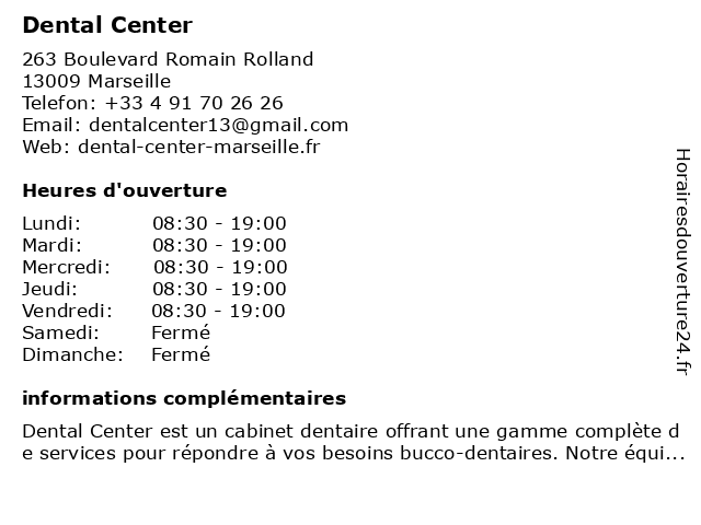1 Massilia Dental System - Prothésiste Dentaire (Distance: 1,05 km) 18 Avenue du Commandant Guilbaud, 13009 Marseille consultation, dentaire, dental, docteur, massilia, med, médecin, prothésiste, system, traitement 2 Audioprothésiste MARSEILLE - PRADO Optical Center (Distance: 1,82 km) 263 Avenue du Prado, 13008 Marseille audioprothésiste, center, marseille, optical, prado 3 Esthetic Center (Distance: 1,98 km) 331 Avenue du Prado, 13008 Marseille beauté, center, centre, cosmétique, esthetic, esthétique, institut, manucure, massage, ongles, soins, épilation 4 Dr Marie Christine Dental Chirurgien-dentiste (Distance: 2,71 km) 1 Rue du Dr Simone Sedan, 13005 Marseille chirurgien, christine, dental, dentiste, dr, marie, médecin, médecine, médical, pharmaceutique, traitement 5 Dental Studio (Distance: 3,11 km) 69 rue Saint-Suffren, 13006 Marseille consultation, dental, docteur, med, médecin, studio, traitement 6 |
