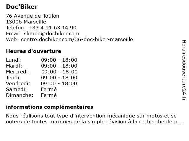 1 Doc'Biker (Distance: 1,17 km) , bd Chave, 13005 Marseille brands, doc'biker, maintenance, motorcycle tires, packages scooter, scooter tires 2 Doc'Biker (Distance: 11,27 km) 2, rue de la Bastidonne, 13400 Aubagne brands, doc'biker, maintenance, motorcycle tires, packages scooter, scooter tires 3 Doc Plongée (Distance: 4,29 km) 35 avenue de la Pointe rouge, 13008 Marseille bouteille, chasse, doc, magasin, matériel, palme, plongée 5 Laboratoire d'analyses médicales - Doc City - Toulon - Cerballiance (Distance: 49,26 km) 202 Avenue Benoit Malon, 83000 Toulon cerballiance, city, d'analyses, doc, dépistages, laboratoire, médicales, toulon 6 |
