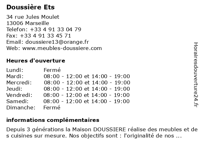 | Mercredi | 08:00-12:00 et 14:00-19:00 |