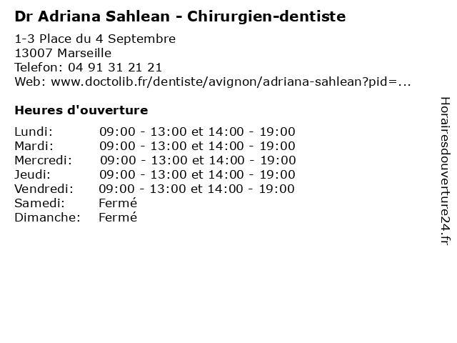 | Lundi | 09:00-13:00 et 14:00-19:00 |