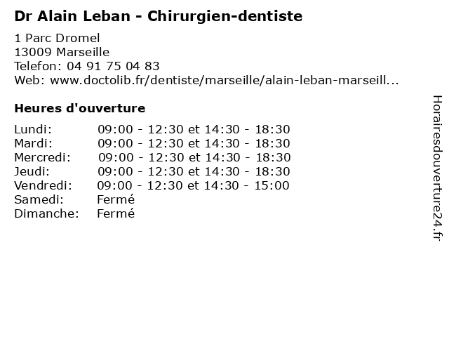 | Lundi | 09:00-12:30 et 14:30-18:30 |