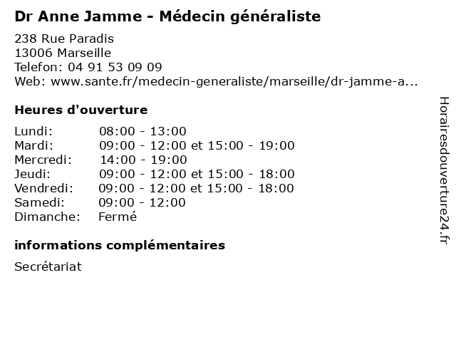 1 Dr Anne-Sophie Dussol - Gastro-entérologue et hépatologue (Distance: 0,11 km) 77 rue du Docteur Escat, 13006 Marseille anne, consultation, docteur, dr, dussol, entérologue, et, gastro, hépatologue, med, médecin, médecine, sophie, traitement 2 Anne Valenza - Sage-femme (Distance: 0,11 km) 77 rue du Docteur Escat, 13006 Marseille anne, consultation, docteur, dr, femme, med, médecin, sage, traitement, valenza 3 Dr Anne Roudaut - Pédiatre (Distance: 0,22 km) 66a Rue Saint-Sébastien, 13006 Marseille anne, docteur, dr, generaliste, mds, medical, pmi, pédiatre, roudaut, soin, st, sébastien 4 Dr Anne-Laure Murru - Chirurgien Dentiste (Distance: 0,40 km) 108 Avenue du Prado, 13008 Marseille 13008, anne, centre, chirurgien, clinadent, dentaire, dentiste, dr, laure, marseille, murru, médico, prado, périer 5 Chabannes Beatrice Anne (Distance: 0,58 km) Libres Et Gourmands, 13006 Marseille anne, beatrice, chabannes, restaurants 6 Dr.Le pillouer Prost Anne- Dermatologue (Distance: 0,58 km) 20b Allee Turcat Mery, 13008 Marseille anne, dermatologue, docteur, dr.le, medecins, pillouer, prost, sante |