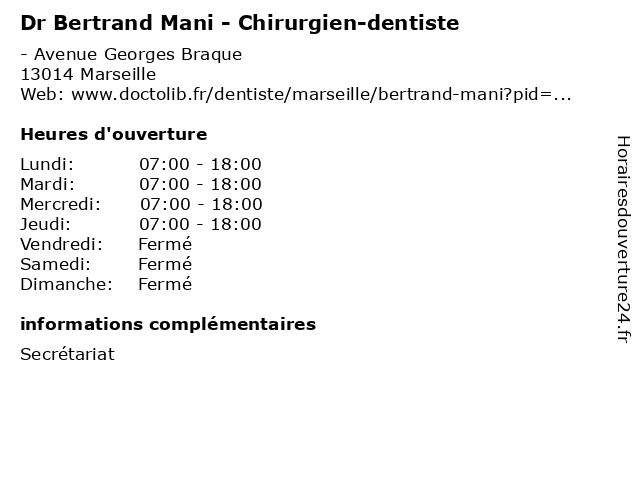| Lundi | 07:00-18:00 |