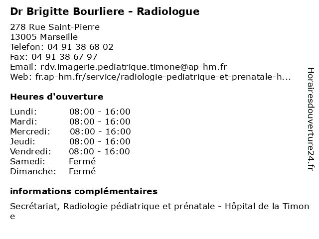 1 Dr Brigitte Chabrol - Pédiatre (Distance: 0,09 km) 264 Rue Saint-Pierre, 13005 Marseille brigitte, chabrol, consultation, docteur, dr, med, médecin, pédiatre, traitement 2 Chez Didier et Brigitte (Distance: 1,19 km) 97 Rue de Tilsit, 13006 Marseille brigitte, chez, commandes, didier, et, pizza, pizzeria, restaurants 3 Dr Brigitte Pfister - Endocrinologue (Distance: 1,72 km) 172 Rue du Rouet, 13008 Marseille brigitte, dr, endocrinologue, médecins, médicaments, pfister, santé, secrétariat, spécialiste 4 Lenoble Borelli Brigitte (Distance: 1,82 km) 91 La Canebiere, 13001 Marseille borelli, brigitte, lenoble, restaurants 5 Bijou Brigitte (Distance: 1,90 km) 64 Rue Saint Ferreol, 13006 Marseille beaute, bijou, bijouterie, brigitte, fantaisie 6 Bijou Brigitte (Distance: 2,27 km) 17 Cours Belsunce, 13001 Marseille bijou, bourse, brigitte, centre, commercial, marseille |
