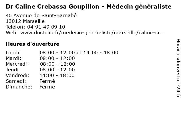 1 Mac Calin Caline (Distance: 24,24 km) , Rue R. Cassin, 13100 Aix en provence calin, caline, caregivers houses, child care, family home, home care, kindergartens, mac, micro-nurseries, parental home 2 Dr Jean François Coulon - Vétérinaire (Distance: 0,08 km) 46 Avenue de Saint-Barnabé, 13012 Marseille animaux, clinique, coulon, dr, françois, jean, médical, santé, soins, vétérinaire 3 Dr Karine Catheland - Vétérinaire (Distance: 0,08 km) 46 Avenue de Saint-Barnabé, 13012 Marseille animaux, catheland, clinique, dr, karine, médical, santé, soins, vétérinaire 4 Elisabeth Balestrieri - Naturopathe (Distance: 0,21 km) 46 Avenue de Saint-Barnabé, 13012 Marseille balestrieri, elisabeth, medecin, naturopathe, plante, sante 5 Medecin Evelyne Canepa Quintin (Angiologue) (Distance: 0,35 km) 44 Boulevard des Alpes, 13012 Marseille angiologue, canepa, docteur, evelyne, medecin, quintin, sante, services 6 Dr Nicolas Pellegrin - Médecin généraliste (Distance: 0,40 km) 15 Avenue de Saint-Barnabé, 13004 Marseille consultation, docteur, domicile, dr, en, générale, généraliste, médecin, médecine, nicolas, pellegrin, santé, visite |