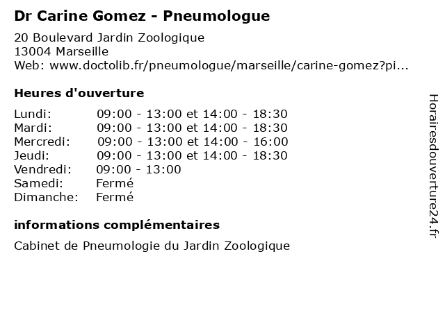 1 Dr Carine Gomez - Pneumologue (Distance: 1,42 km) 12 Rue des Linots, 13012 Marseille carine, consultation, docteur, dr, gomez, med, médecin, pneumologue, traitement 2 Dr Carine Gomez - Pneumologue (Distance: 1,48 km) 23 Rue des Linots, 13004 Marseille carine, consultation, docteur, dr, gomez, med, médecin, médecine, pneumologue, secrétariat, traitement 3 Dr Carine Gomez - Pneumologue (Distance: 2,91 km) 13 Rue Raymonde Martin, 13013 Marseille carine, consultation, docteur, dr, gomez, med, médecin, médecine, pneumologue, traitement 4 Dr Laetitia Velardocchio - Pneumologue (Distance: 0,00 km) 20 Boulevard Jardin Zoologique, 13004 Marseille dr, laetitia, médecins, médicaments, pneumologue, santé, secrétariat, spécialiste, velardocchio 5 Dr Hicham Khouri - Pneumologue (Distance: 0,85 km) 15 Avenue de Saint-Barnabé,, 13004 Marseille dr, hicham, khouri, médecins, médicaments, pneumologue, santé, secrétariat, spécialiste 6 Cabinet Parc Provence - Pneumologue, Allergologue (secrétariat ) (Distance: 1,20 km) 46 Avenue de St Barnabé, 13012 Marseille allergologue, cabinet, divertissement, livres, magazine, parc, pneumologue, provence, secrétariat |