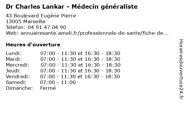 | Lundi | 07:00-11:30 et 16:30-18:30 |