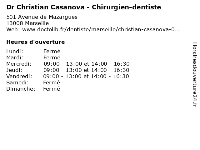 | Mercredi | 09:00-13:00 et 14:00-16:30 |
