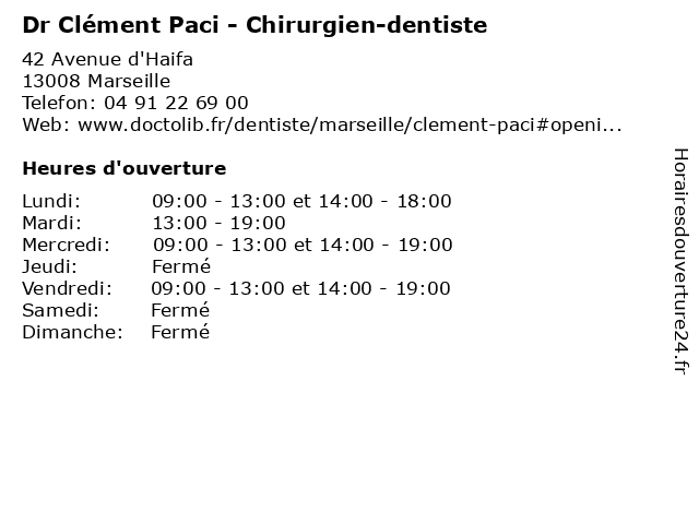 | Lundi | 09:00-13:00 et 14:00-18:00 |