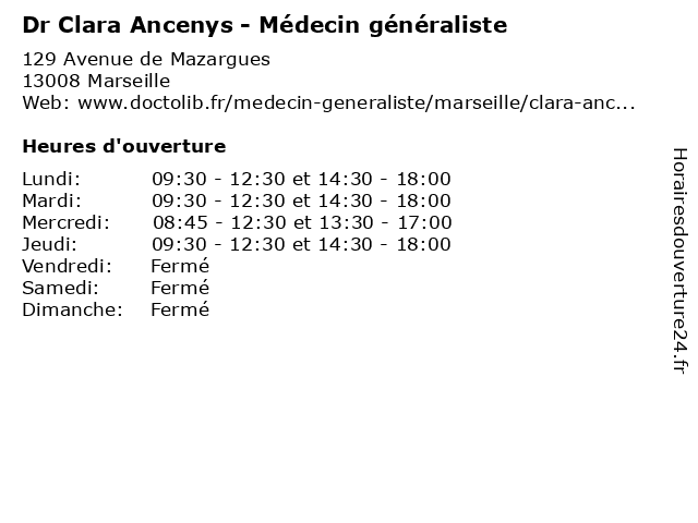 | Mardi | 09:30-12:30 et 14:30-18:00 |