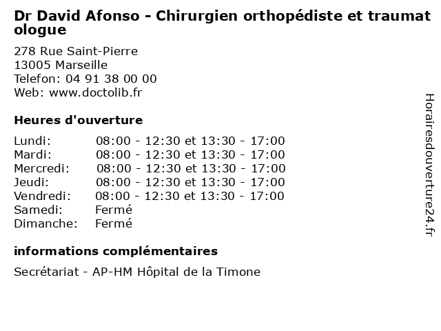 | Jeudi | 08:00-12:30 et 13:30-17:00 |
