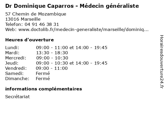 | Lundi | 09:00-11:00 et 14:00-19:45 |