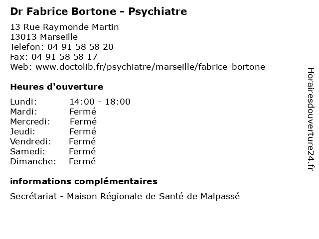 1 Dr Fabrice Bortone - Psychiatre (Distance: 5,84 km) 52 Boulevard Périer, 13008 Marseille bortone, consultation, docteur, dr, fabrice, med, médecin, psychiatre, traitement 2 Dr Akli Bouchefra - Psychiatre (Distance: 0,00 km) 13 Rue Raymonde Martin, 13013 Marseille akli, bouchefra, consultation, docteur, dr, med, médecin, médecine, psychiatre, traitement 3 Dr Christophe Boulanger-Marinetti - Psychiatre (Distance: 0,00 km) 13 Rue Raymonde Martin, 13013 Marseille boulanger, christophe, consultation, docteur, dr, marinetti, med, médecin, médecine, psychiatre, traitement 4 Dr Fabrice Thoin - Cardiologue (Distance: 0,00 km) 13 Rue Raymonde Martin, 13013 Marseille cardiologue, consultation, docteur, dr, fabrice, med, médecin, médecine, secrétariat, thoin, traitement 5 Dr Rafif Almhana - Psychiatre - secrétariat (Distance: 1,63 km) 8 Avenue des Olives, 13013 Marseille almhana, dr, médecin, médecine, médical, pharmaceutique, psychiatre, rafif, secrétariat, traitement 6 Dr Christophe Boulanger-Marinetti - Psychiatre - secrétariat (Distance: 1,63 km) 8 Avenue des Olives, 13013 Marseille boulanger, christophe, dr, marinetti, médecin, médecine, médical, pharmaceutique, psychiatre, secrétariat, traitement |
