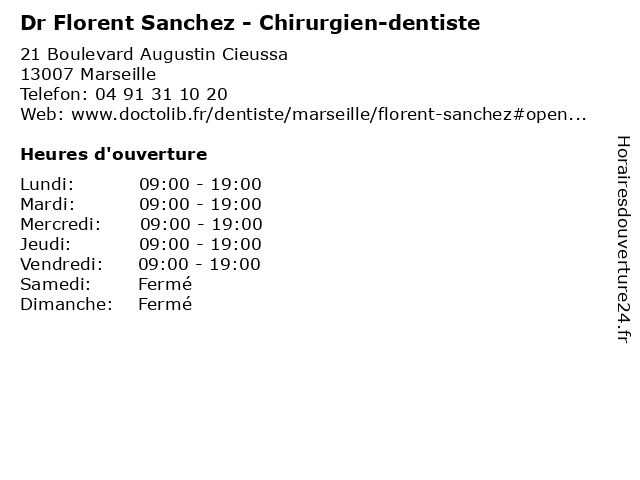1 Maître Florent Larroque - Avocat (Distance: 1,71 km) 13 cours Pierre Puget, 13006 Marseille avocat, avocats, cabinet, conseils, contentieux, florent, juridique, justice, larroque, litiges, maître, services 2 Florent Fournier - Chiropracteur (Distance: 2,35 km) 8 Rue Berlioz, 13006 Marseille chiro, chiropracteur, florent, fournier, sante, soins 3 Dr Florent Cornu- Pédiatre (Distance: 3,27 km) - Boulevard de Louvain, 13008 Marseille consultation, cornu, docteur, dr, florent, med, médecin, médecine, pédiatre, secrétariat, traitement 4 Dr Florent Paoli - Cardiologue (Distance: 3,36 km) 26 Boulevard de Louvain, 13008 Marseille cardiologue, dr, florent, médecins, médicaments, paoli, santé, secrétariat, spécialiste 5 Dr Florent Heraud - Anesthésiste (Distance: 3,43 km) 147 boulevard Baille, 13005 Marseille anesthésiste, consultation, docteur, dr, florent, heraud, med, medecine, medical, médecin, traitement 6 Florent Morin - Masseur-kinésithérapeute (Distance: 6,28 km) 58 Avenue des Caillols, 13012 Marseille bien-être, en, florent, forme, kinésithérapeute, kinésithérapie, masseur, morin, remise, rééducation |