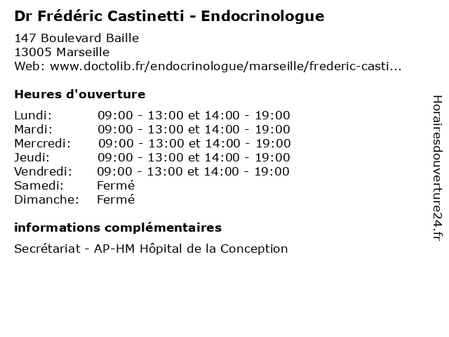 1 Pr Frédéric Sebag - Chirurgien endocrinien (Distance: 0,00 km) 147 Boulevard Baille, 13005 Marseille chirurgien, consultation, docteur, endocrinien, frédéric, med, médecin, médecine, pr, sebag, traitement 2 Mon Chasseur Immo - Frédéric M. (Distance: 0,73 km) 36 Rue de la Loubière, 13006 Marseille chasseur, frédéric, immo, m., mon 3 Dr. Frédéric Hougrand - Ophtalmologie (Distance: 0,98 km) 16 av de delphes, 13006 Marseille consultation, docteur, dr., frédéric, hougrand, ophtalmologie, santé 4 Maître Frédéric Faubert - Avocat (Distance: 1,63 km) 64 rue Montgrand, 13006 Marseille avocat, avocats, civils, droits, faubert, frédéric, juridiques, maître 5 Maître Frédéric Pourriere - Avocat (Distance: 1,71 km) 66 rue Grignan, 13001 Marseille avocat, avocats, civils, droits, frédéric, juridiques, maître, pourriere 6 Maître Frédéric Asdighikian - Avocat (Distance: 1,78 km) 42 rue Sainte, 13001 Marseille asdighikian, avocat, avocats, civils, droits, frédéric, juridiques, maître |