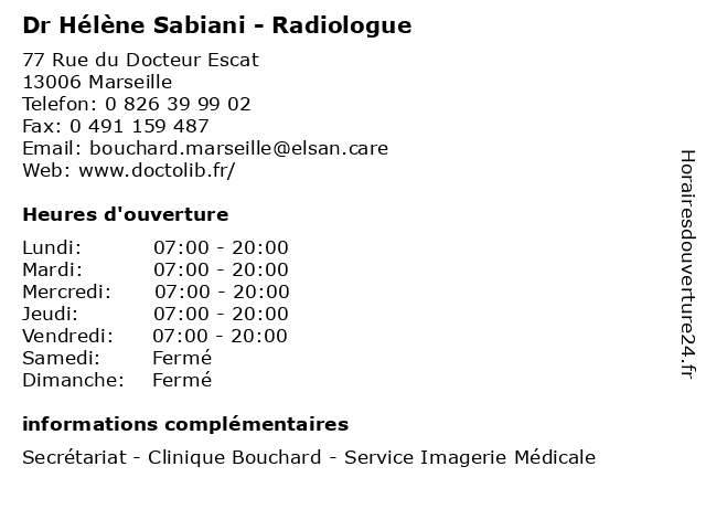 1 Dr Marie-Hélène Paladini - Anesthésiste réanimatrice (Distance: 0,00 km) 77 Rue Docteur Escat, 13006 Marseille anes, anesthésiste, dr, hélène, marie, paladini, réa, réanimateur, réanimatrice 2 Dr Hélène Sichez Com - Néphrologue (Distance: 0,00 km) 77 Rue Dr Escat, 13006 Marseille com, consultation, docteur, dr, hélène, med, médecin, médecine, néphrologue, secrétariat, sichez, traitement 3 Dr Patrick Sabiani - Chirurgien viscéral et digestif (Distance: 0,69 km) 33 Avenue de Toulon, 13006 Marseille chirurgie, chirurgien, digestif, dr, et, general, patrick, sabiani, soins, viscéral 4 Maître Anne-Hélène Redé-Tort - Avocate (Distance: 0,99 km) 63 rue Paradis, 13006 Marseille anne, avocate, avocats, civils, droits, hélène, juridiques, maître, redetort, redé, tort 5 Maître Hélène Fritz - Avocate (Distance: 0,99 km) 29 rue Breteuil, 13006 Marseille avocate, avocats, civils, droits, fritz, hélène, juridiques, maître 6 Maître Marie-Hélène Salasca-Blanc - Avocate (Distance: 1,05 km) 53-53 Bis rue Grignan, 13006 Marseille avocate, avocats, blanc, civils, droits, hélène, juridiques, marie, maître, salasca |