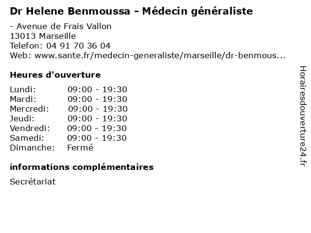 | Mercredi | 09:00-19:30 |