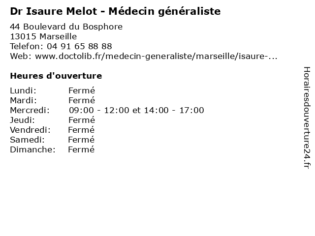 | Mercredi | 09:00-12:00 et 14:00-17:00 |