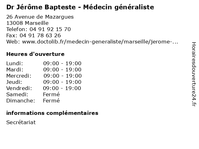 1 Delfour Jérôme - Cabinet Infirmier (Distance: 0,68 km) 4 Boulevard Latil, 13008 Marseille cabinet, cabinet infirmier, delfour, infirmier, jérôme, médicale, service 2 Dr Jérôme Crespin - Gynécologue obstétricien (Distance: 1,29 km) 44 Allée Turcat Méry, 13008 Marseille consultation, crespin, docteur, dr, gynécologue, jérôme, med, médecin, médecine, obstétricien, secrétariat, traitement 3 Dr Jérôme Delattre - ORL - Chirurgien de la face et du cou (Distance: 1,68 km) 45b Avenue Jules Cantini, 13006 Marseille chirurgien, consultation, cou, de, delattre, docteur, dr, du, et, face, jérôme, la, med, médecin, médecine, orl, secrétariat, traitement 4 Dr Jérôme Billot - Anesthésiste (Distance: 1,85 km) 3 Avenue Jules Cantini, 13006 Marseille anesthésiste, billot, consultation, docteur, dr, jerome, jérôme, med, médecin, traitement 5 Dr Jérôme Erwan Leroy - Anesthésiste (Distance: 2,21 km) 16 rue Gaston Berger, 13010 Marseille anesthésiste, consultation, docteur, dr, erwan, jérôme, leroy, med, medecine, medical, médecin, traitement 6 Maître Jérôme PIANA, Avocat (Distance: 2,33 km) 12 Rue Edmond Rostand, 13006 Marseille avocat, jérôme, law firm, lawyer, maître, piana |