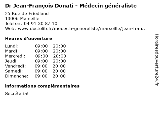 1 François Xavier Fournier (Distance: 0,13 km) 61 Avenue de Toulon, 13006 Marseille fournier, françois, xavier 2 Dr François Silhol - Cardiologue (Distance: 0,30 km) 29 Boulevard Vincent Delpuech, 13006 Marseille cardiologue, docteur, dr, françois, medecin, sante, services, silhol 3 Dr François Sicard - Anesthésiste (Distance: 0,46 km) 3 Avenue Jules Cantini, 13006 Marseille anesthésiste, consultation, docteur, dr, francois, françois, med, médecin, sicard, traitement 5 Dr Jean-François Hassan - Pédiatre - secrétariat (Distance: 0,52 km) 24 Avenue du Prado, 13006 Marseille consultation, docteur, dr, françois, hassan, jean, med, médecin, médecine, pédiatre, secrétariat, traitement 6 Dr François Lapierre - Angiologue (Distance: 0,52 km) 24 Avenue du Prado, 13006 Marseille angiologie, angiologue, dr, françois, lapierre, vaisseaux, vasculaire |