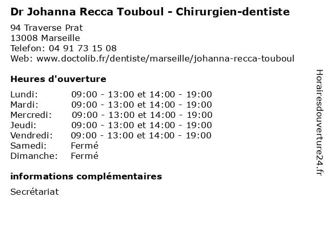 | Lundi | 09:00-13:00 et 14:00-19:00 |