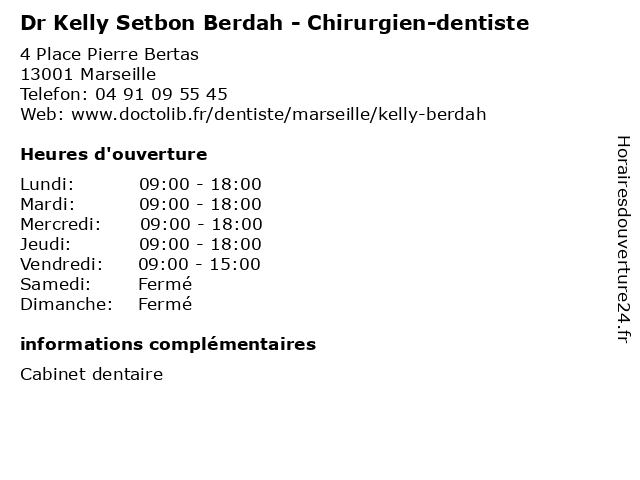 1 Dr Kelly Setbon Berdah - Chirurgien-dentiste (Distance: 0,00 km) 4 Place Pierre Bertas, 13001 Marseille berdah, chirurgien, dentaire, dentiste, dr, implantologie, kelly, parodontologie, setbon 2 Dr Dylan Berdah - Chirurgien-dentiste (Distance: 0,00 km) 4 Place Pierre Bertas, 13001 Marseille berdah, chirurgien, dentaire, dentiste, dr, dylan, implantologie, parodontologie 3 Dr Dylan Berdah - Chirurgien-dentiste (Distance: 0,00 km) 4 Place Pierre Bertas, 13001 Marseille berdah, chirurgien, consultation, dentiste, docteur, dr, dylan, med, secrétariat 4 Maître Isabelle Berdah - Avocate (Distance: 0,81 km) 29 rue Paradis, 13001 Marseille avocate, avocats, berdah, civils, droits, isabelle, juridiques, maître 5 Dr Nicole Berdah - Gynécologue (Distance: 1,31 km) 10 Rue Edmond Rostand, 13006 Marseille berdah, care, clinic, dr, gynécologue, health, nicole 6 Maître Olivia Setbon - Avocate (Distance: 1,55 km) 3 rue de Village, 13006 Marseille avocate, avocats, civils, droits, juridiques, maître, olivia, setbon |