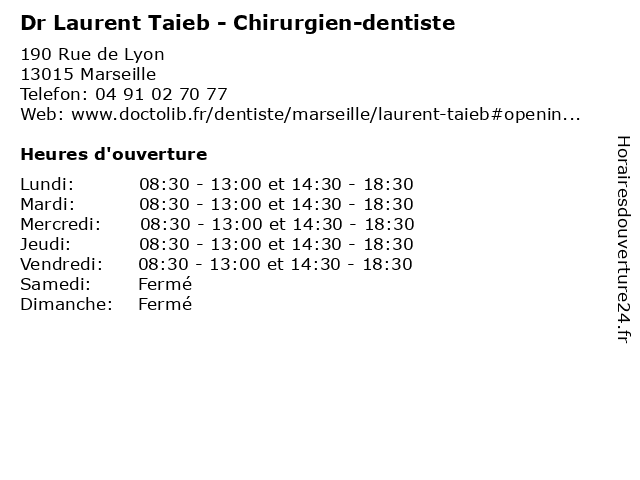 | Lundi | 08:30-13:00 et 14:30-18:30 |